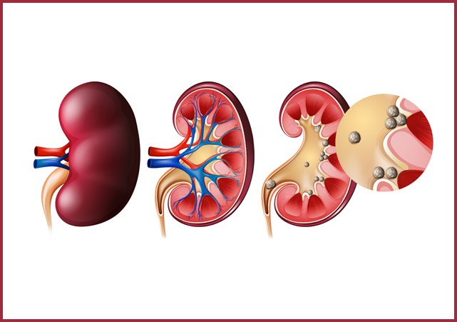 سنگ کلیه، این قطعه بلوری شکل ممکن است در هر جای دستگاه ادراری از کلیه تا مثانه دیده شود و عموماً با حرکت خود، درد زیادی را برای بیمار به همراه دارد.