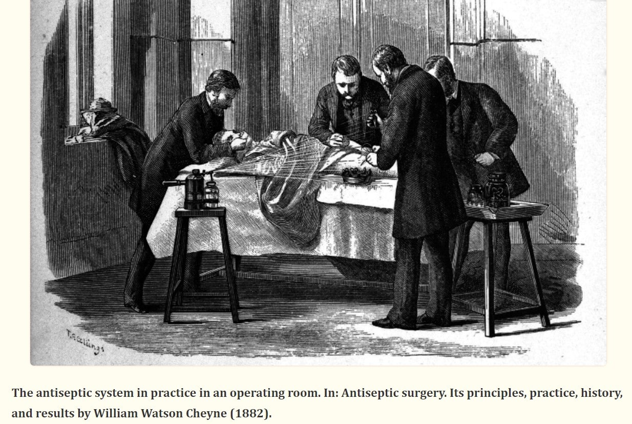 پزشکان از قرن شانزدهم به بعد میدانستند که میکروارگانیسمها با بیماریها مرتبط هستند اما ارتباط بین میکروبها و عفونت زخم را کشف نمیکردند.