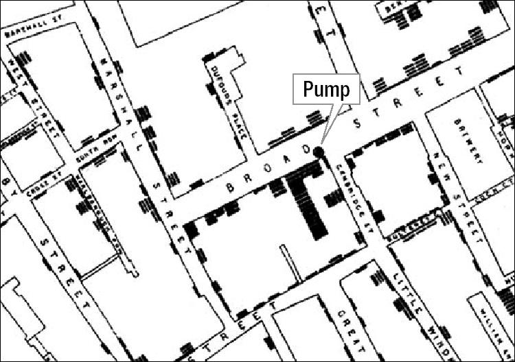 هنگامیکه در پاییز 184۸ دومین پاندمی وبای آسیایی به لندن رسید، جان اسنو بر آن شد تا نظریههای غالبی را که در مورد انتقال این بیماری کشنده وجود داشتند را زیر سؤال ببرد. این نظریهها که در اواسط دهه 1800 مطرحشده بودند وبا را یک عفونت هوایی میدانستند. او با پژوهشهایی که انجام داد به این نتیجه رسید که وبا تنها با بلعیدن (مادهی مرضی) مخصوص این بیماری، قابلانتقال است.